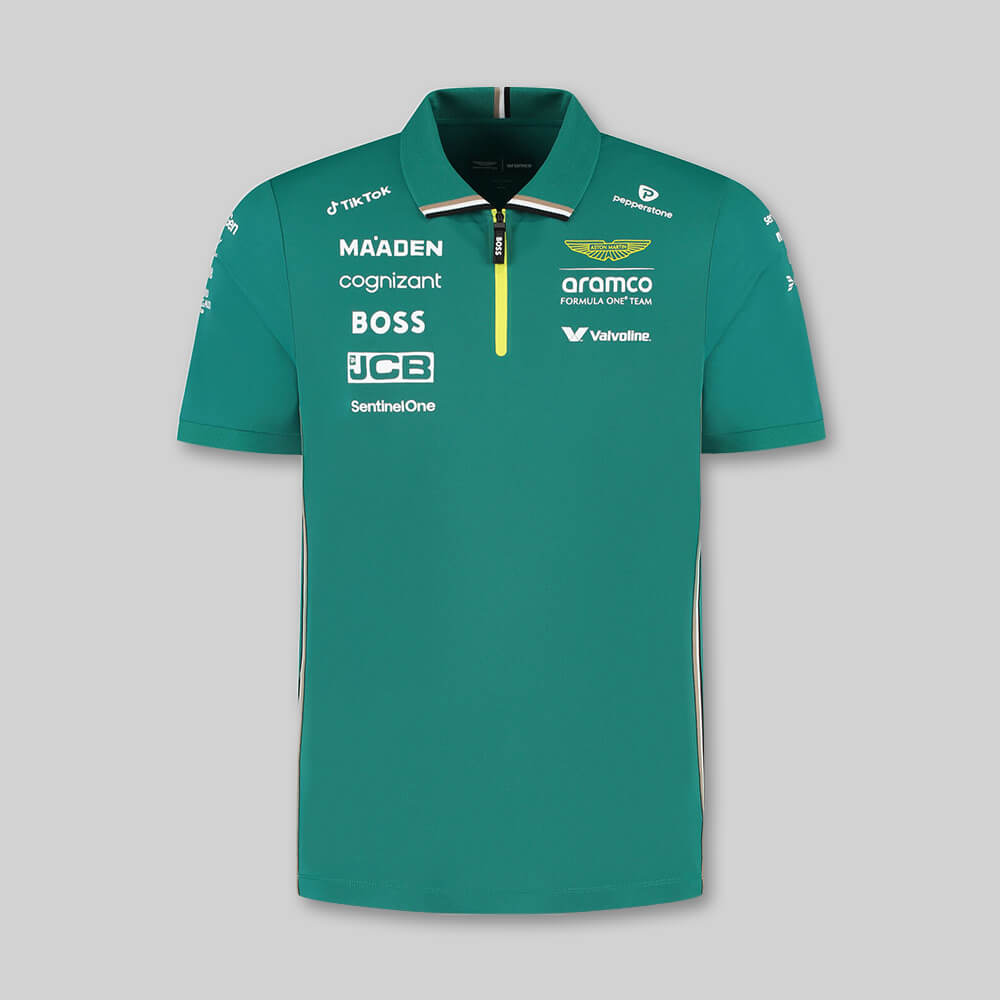 Design: Logos floqués inspirés des écuries F1 – col polo et fermeture boutonnée