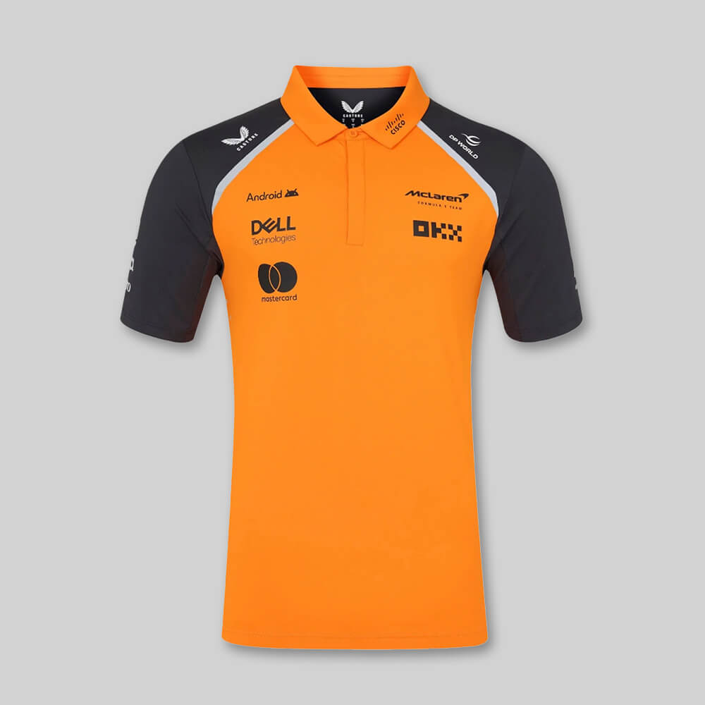 Design: Logos floqués inspirés des écuries F1 – col polo et fermeture boutonnée