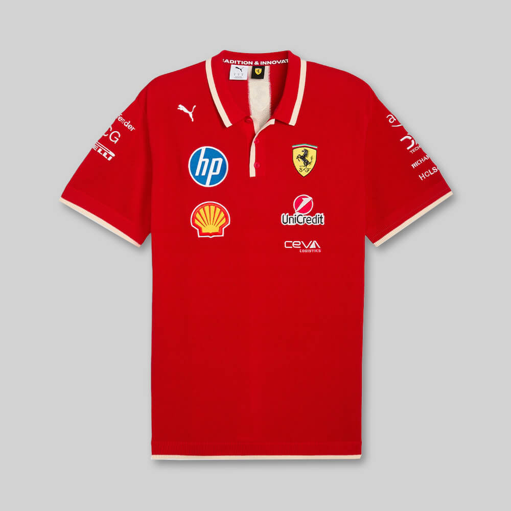 Design: Logos floqués inspirés des écuries F1 – col polo et fermeture boutonnée