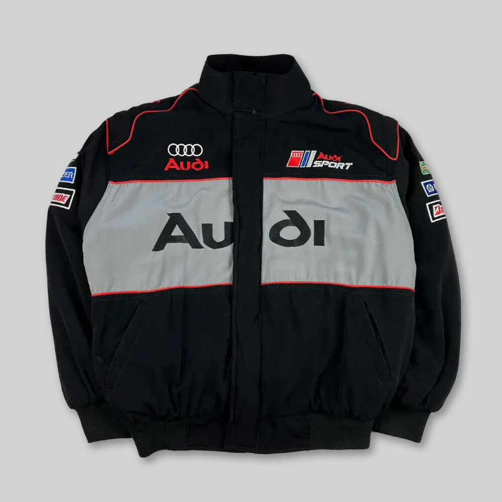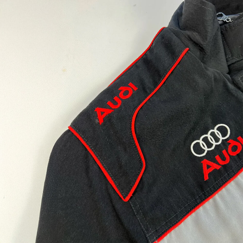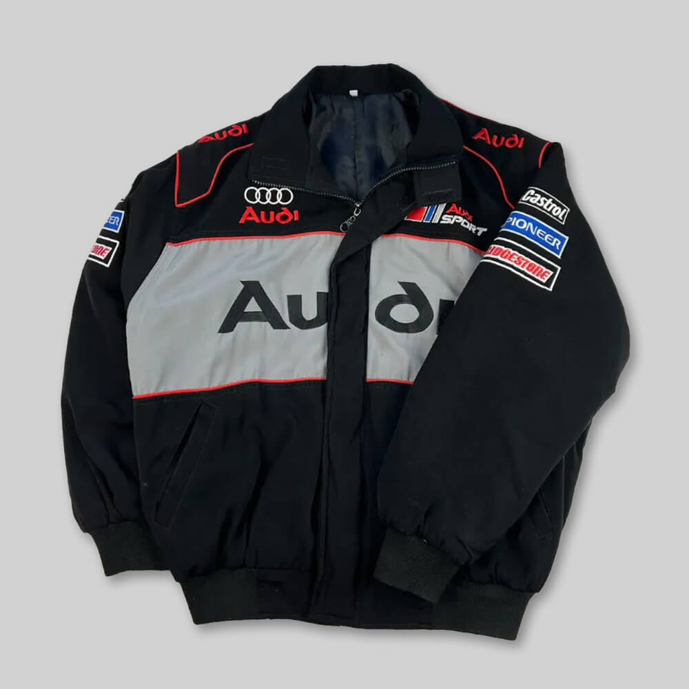 Design : Broderies soignées, écussons cousus et détails inspirés de l'univers automobile