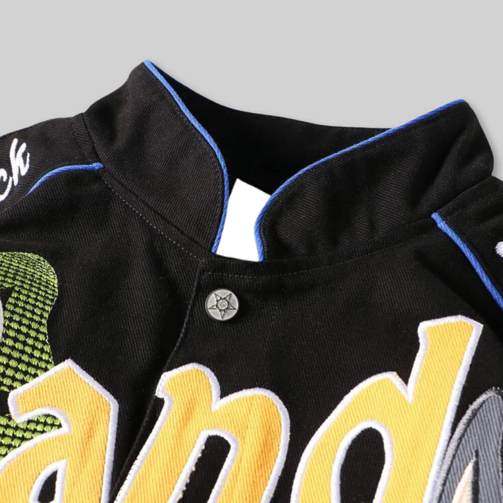 Design : Broderies soignées, écussons cousus et détails inspirés de l'univers automobile
