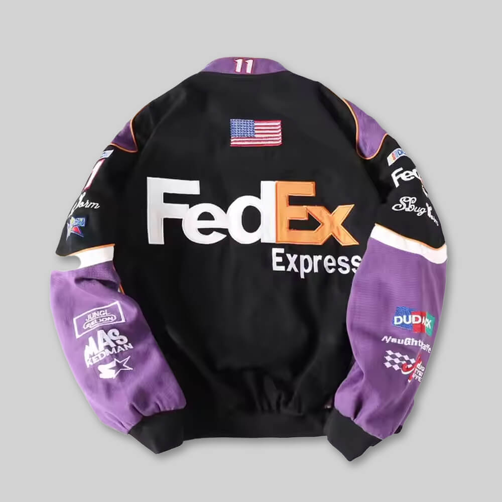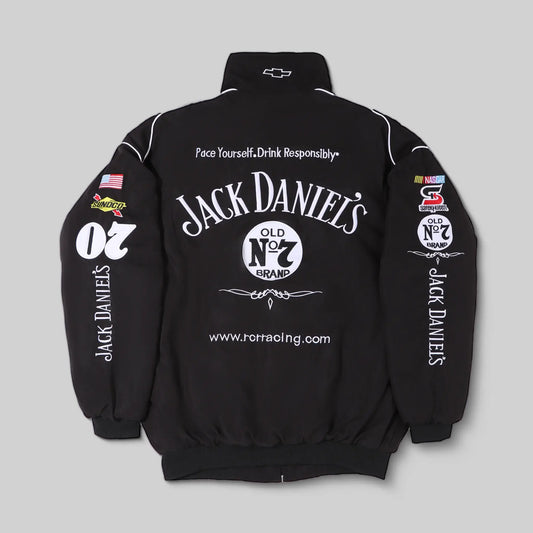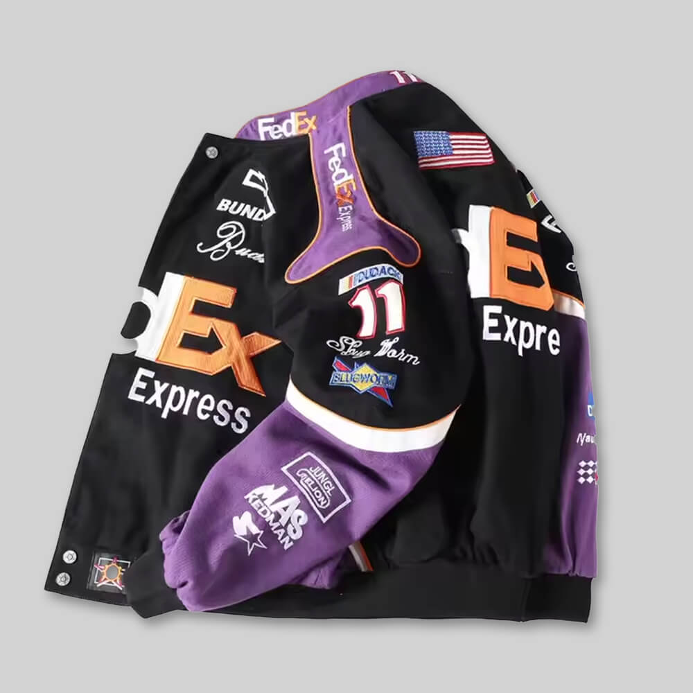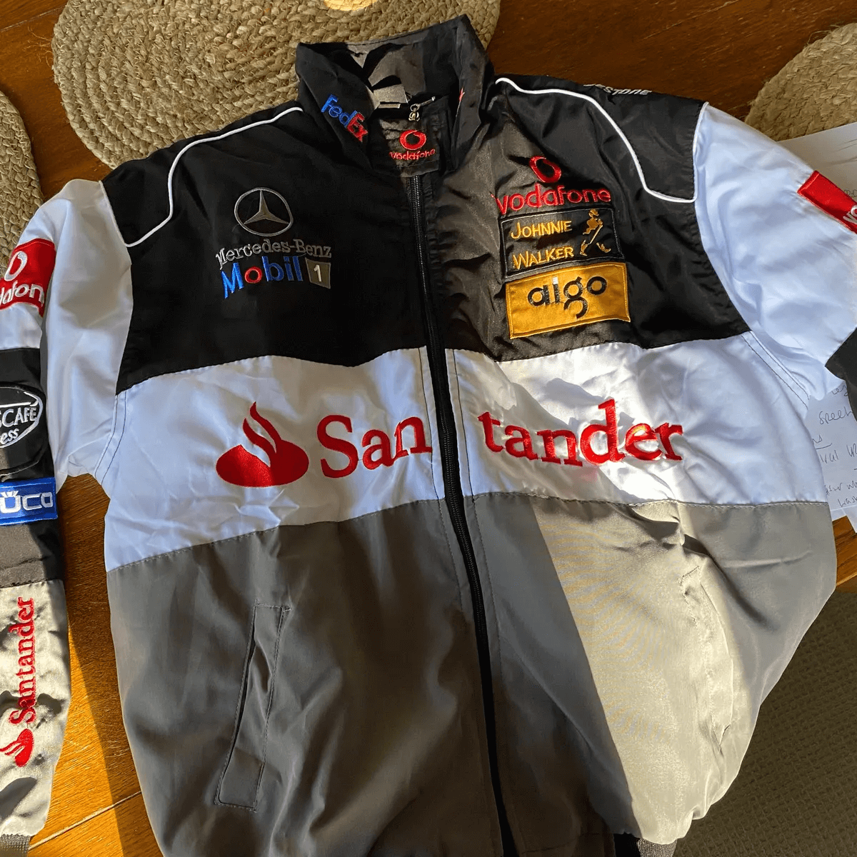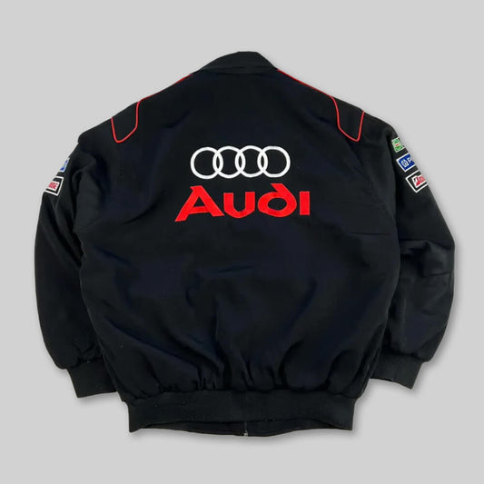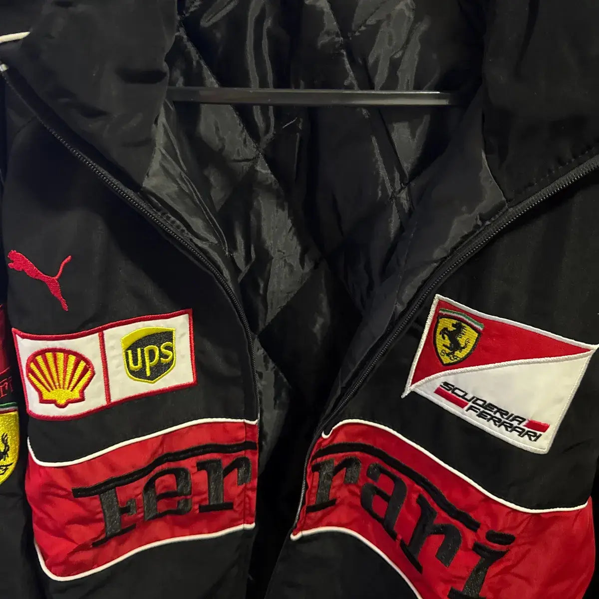 Design : Broderies soignées, écussons cousus et détails inspirés de l'univers automobile