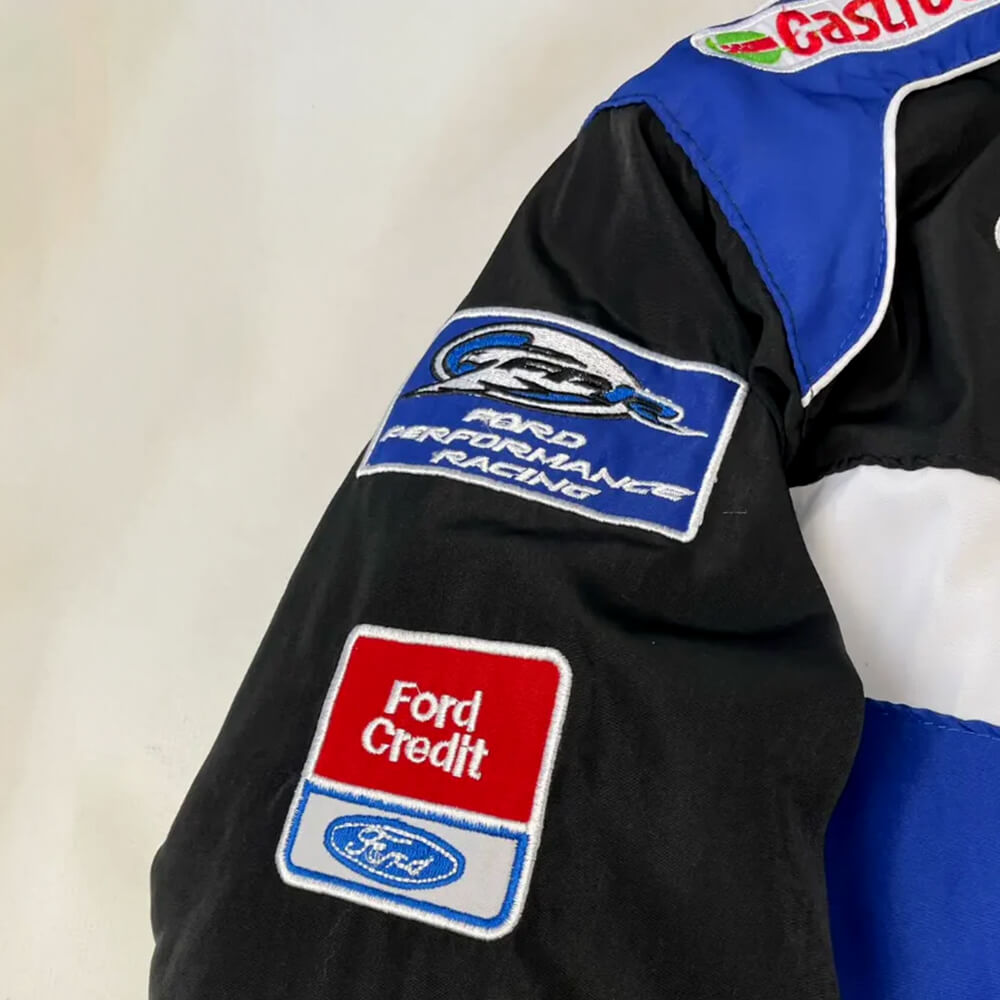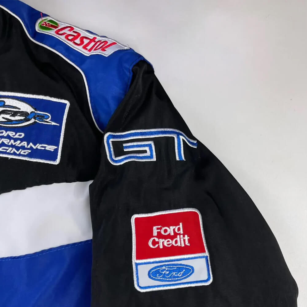 Design : Broderies soignées, écussons cousus et détails inspirés de l'univers automobile