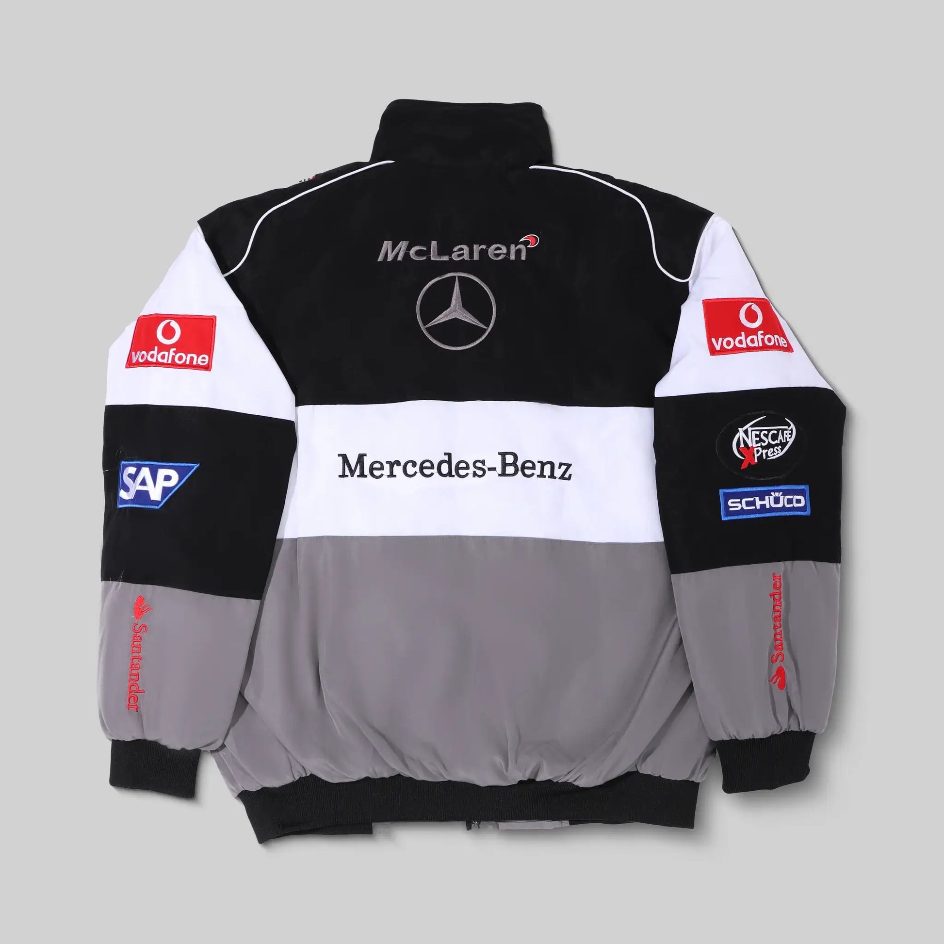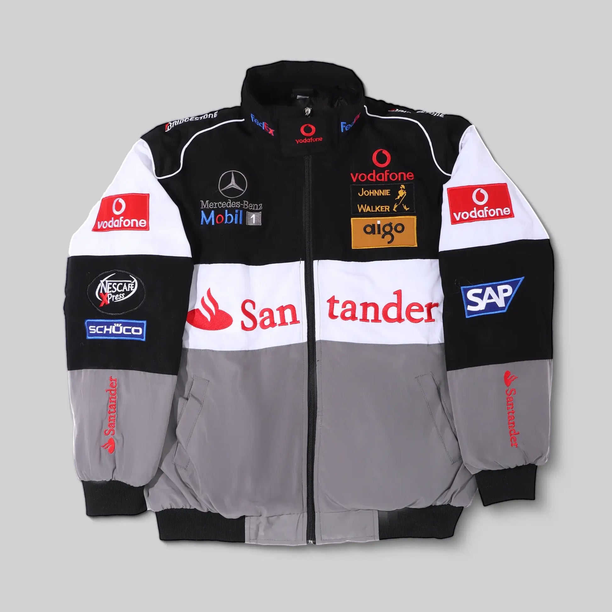 Design : Broderies soignées, écussons cousus et détails inspirés de l'univers automobile