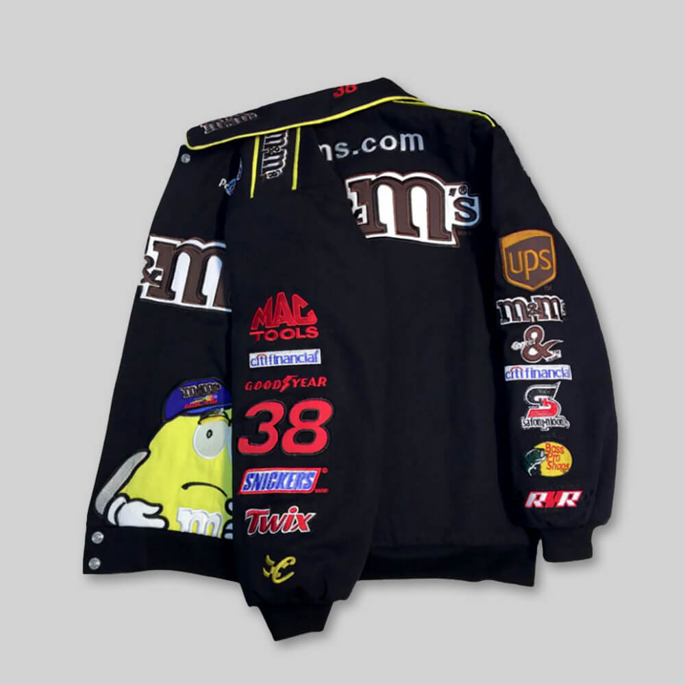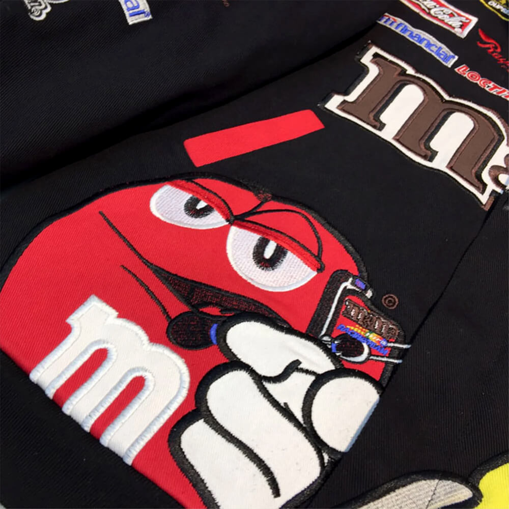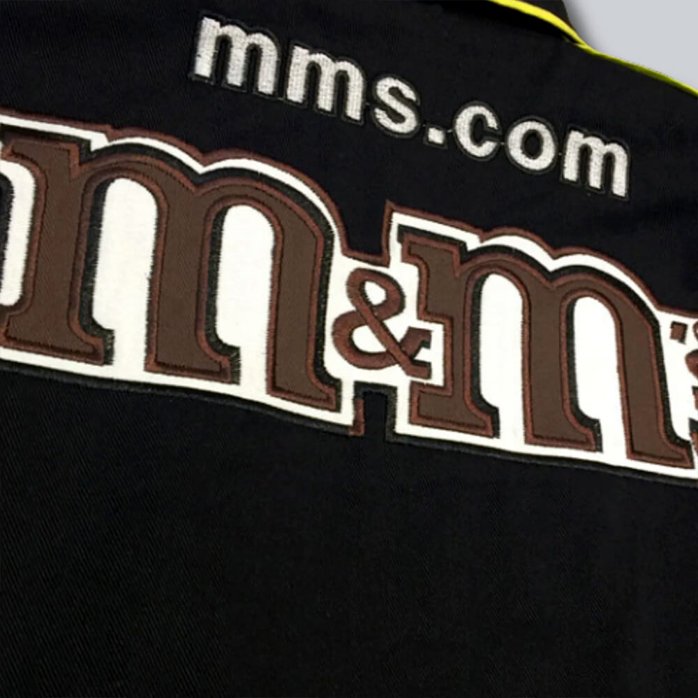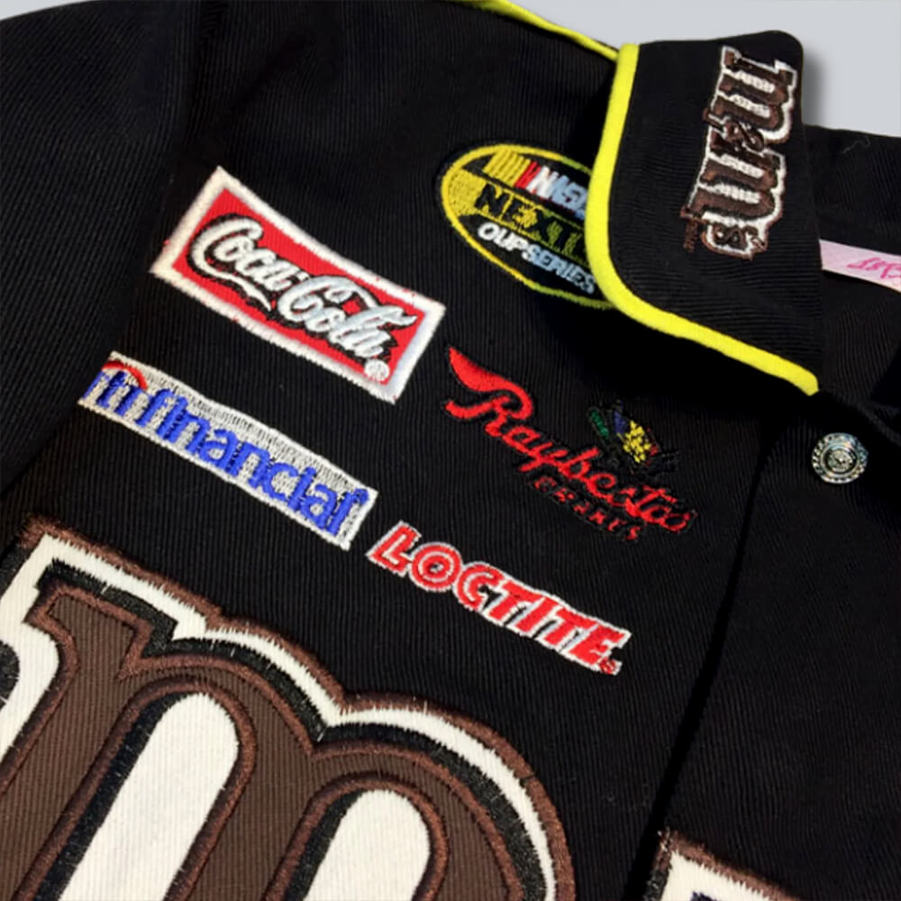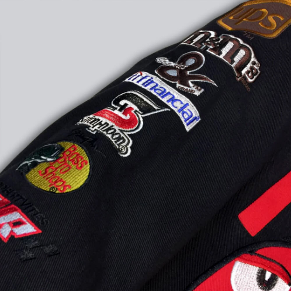 Design : Broderies soignées, écussons cousus et détails inspirés de l'univers automobile