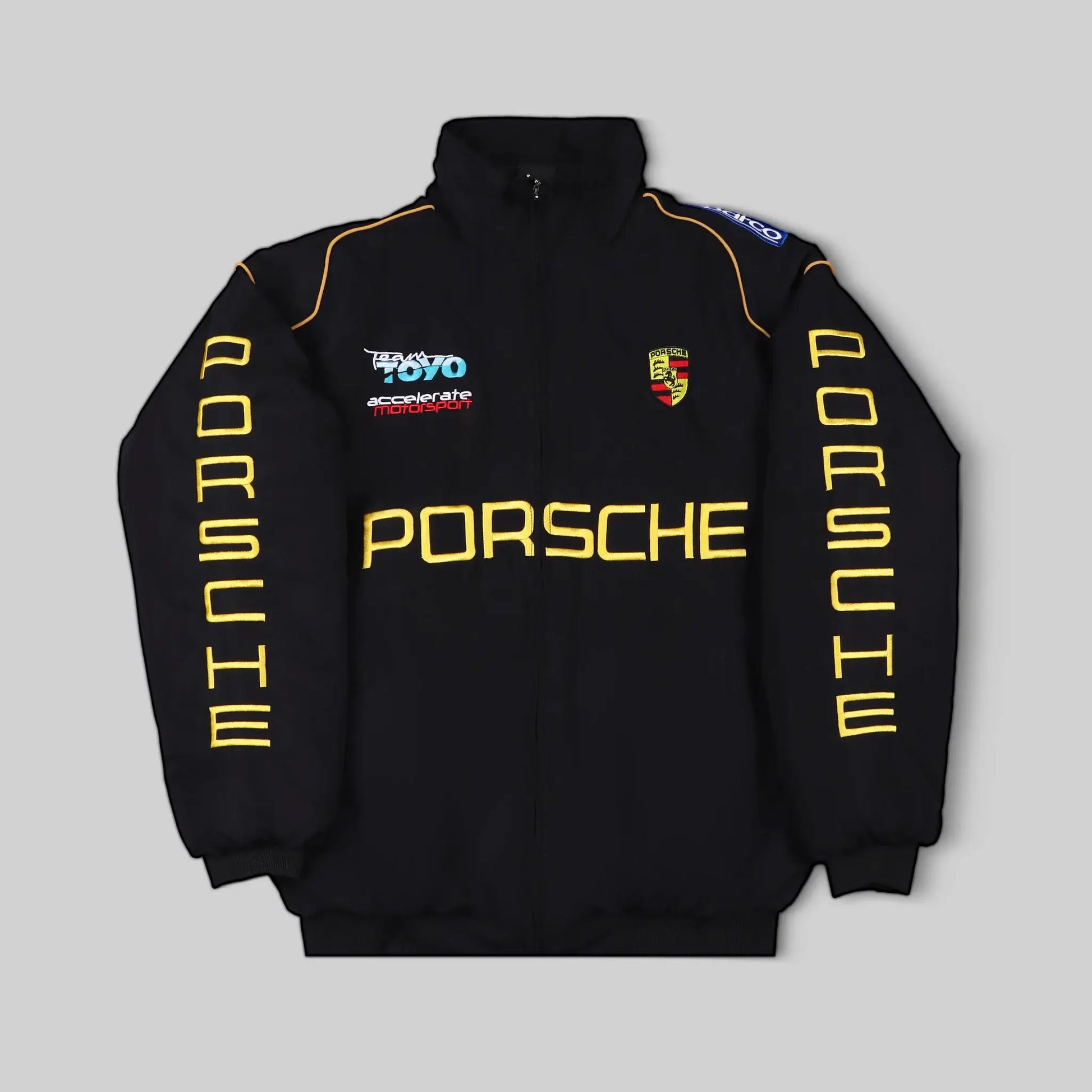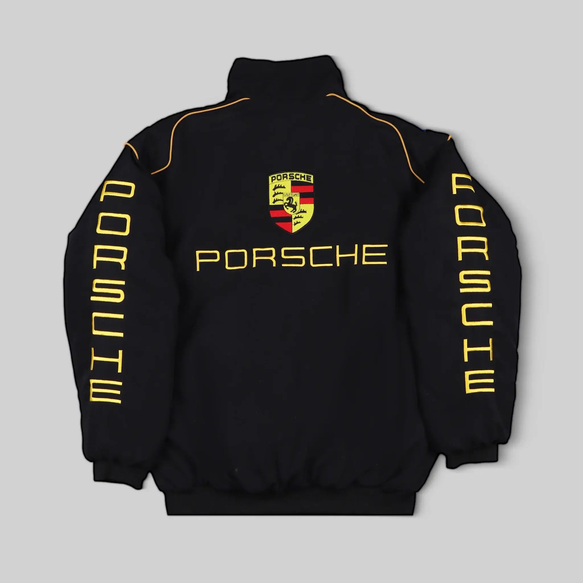 Design : Broderies soignées, écussons cousus et détails inspirés de l'univers automobile